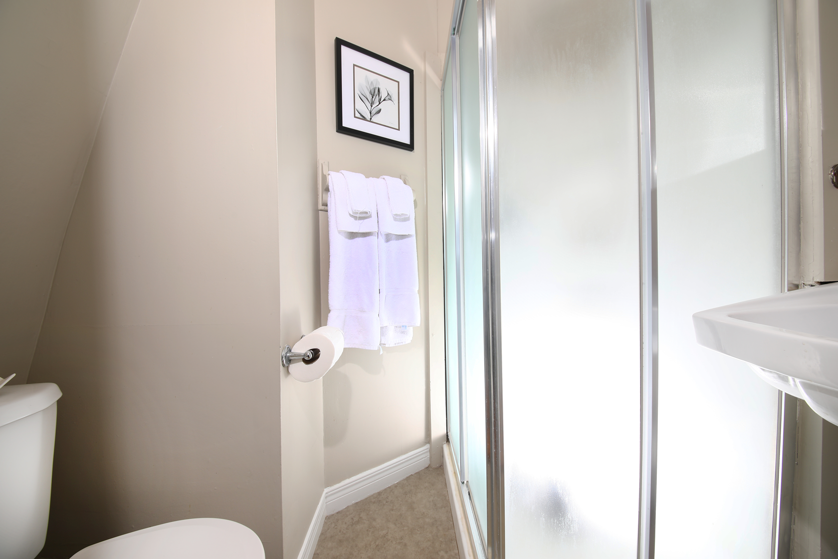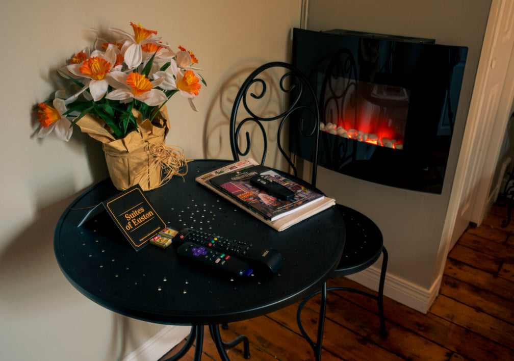 Spacious 400 sq ft suite with city view, fireplace, and a double bed. Includes kitchenette, washer/dryer, and LED TV.